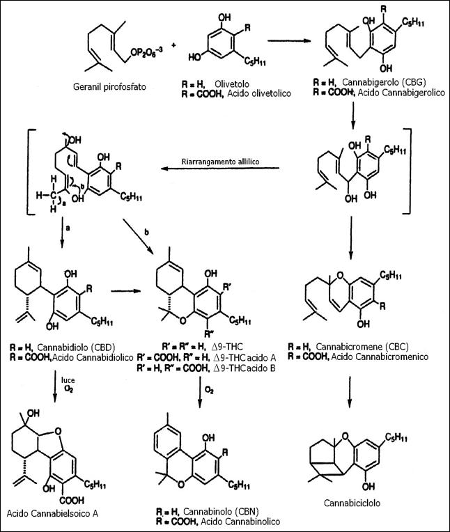 Fig.35: Sintesi dei Cannabinoidi (da Fellermeier e Zenk, 1998) https://encrypted-tbn3.gstatic.com/imagesq=tbn:ANd9GcTsC2JhRZLknbgvpyEQVp_4MhEDQWaqygb3V3e93FqYL80pCWI9 Ultima visita 8 marzo 2015;