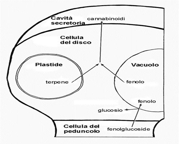 Fig.45: Siti di biosintesi e bioaccumulo dei cannabinoidi (da Mahlberg e Kim, 2003) http://4.bp.blogspot.com/-N3Dw4zPosoU/Tf3d3Gn_hJI/AAAAAAAADk0/7CM9WBnzYgY/s640/image024.jpg Ultima visita 8 marzo 2015;